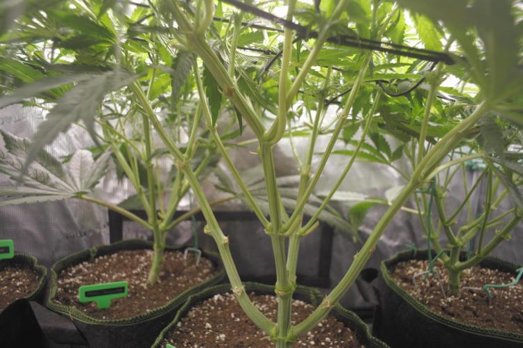 Germaican My watering rhytm is a bit lacking. This time i am using more and more water as the plants keep growing and only water in circles around the plants, very little at the stems. No self feed activated only to keep them off the ground. Sizes differ a lot. Even LB2 the latest addition starts to grow and keep up, I decided to give her a chance. All seem happy, they have little side shoots already 😄 Keeping the feed light, cause they are all sativas ( except PEX ) the soil should give them enough for now. At the end of this week i decided to start topping above 4h node.