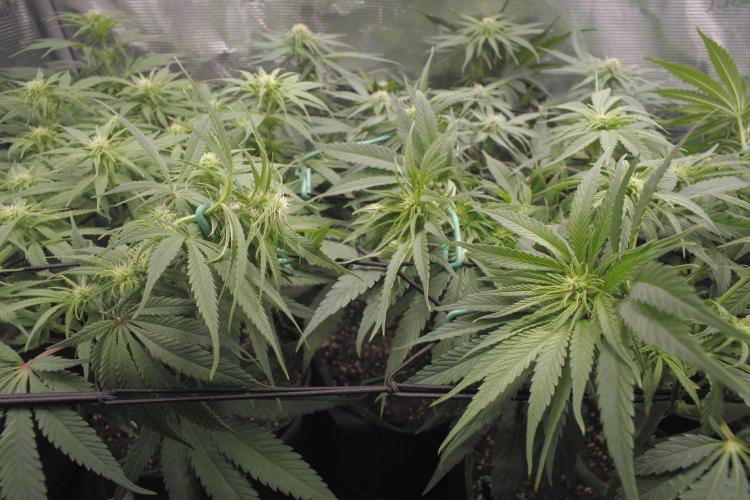 Germaican This week its transition time. I can not wait anylonger as LB1 is starting to outgrow everybody else. I gave them 5 more days to fill a bit more, patience is needed with sativas, thats for sure. ITS MESSY ! ITS RUFF ! ITS HARD! I keep tucking and bending, snapped a top of LB1 but she doesn't care it still grows. Some tops of the FIMing are weaklings, got cut off. The net is filling and I had to find a solution to vent the warm air outside, I can not stress enough how important it is to get new fresh air in the room and the bad air out of the room. Now the early pistils are showing after 10 days of transition.