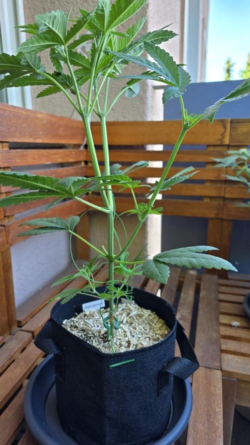 This week, the Black Rainbow was transplanted into its final 5L pot filled with fresh Biobizz Light Mix, allowing for unrestricted root development as vegetative growth ramps up.