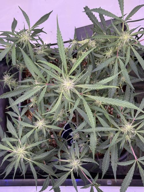 renbuds 10/14-Plugging along. Up to 12 inches now. Bud sites are starting to emerge. Still feels disappointing at this stage compared to previous MS grows. Maybe she'll surprise me in the end.