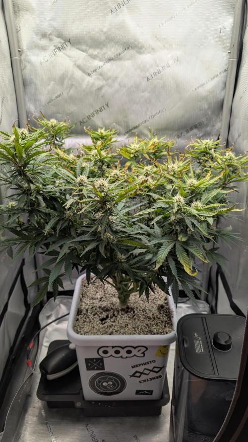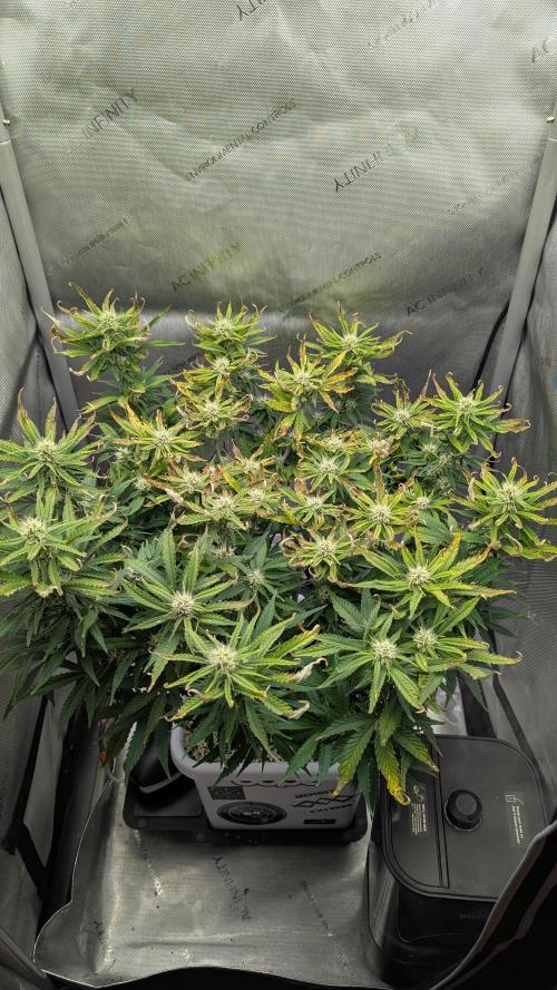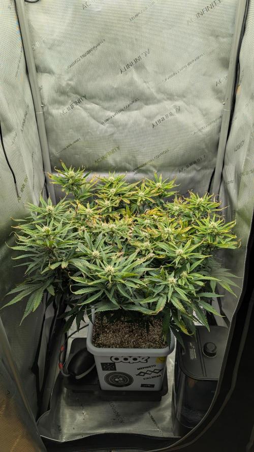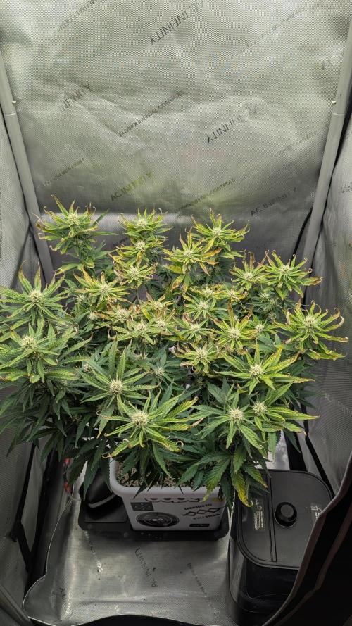 stutch Aktuell ist es wiedermal sehr langweilig. Kontrolliere jeden Tag den PH, der relativ stabil bleibt, und stecke den ein oder anderen Trieb wieder unters Netz. In der vergangenen Woche kam die neue Lampe an, ein Ionboard S33 von AC Infinity mit 260W. Die Lampe ist schon heftig überdimensioniert, läuft aktuell aber nur auf 40% und leuchtet das gesamte Zelt bis zum Rand deutlich besser aus. Der Plan ist eine sehr gleichmäßiges Blattdach zu erzeugen um alle Buds mit ordentlich Licht auszustatten, bis jetzt klappt es ganz gut :)