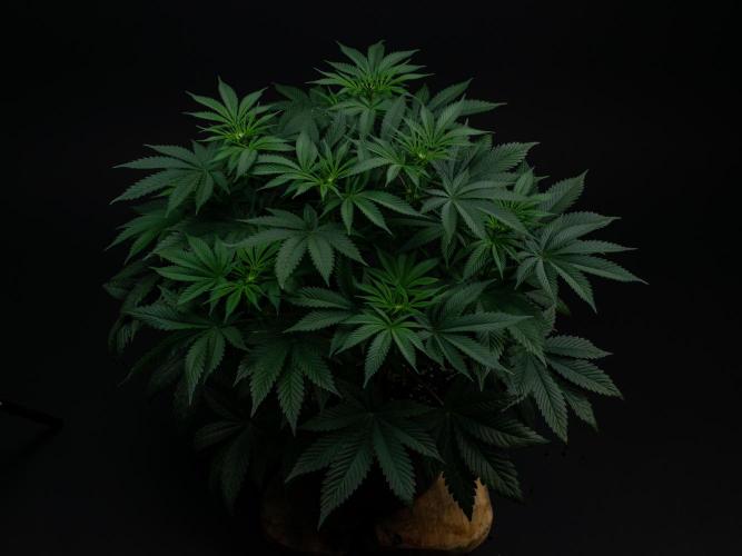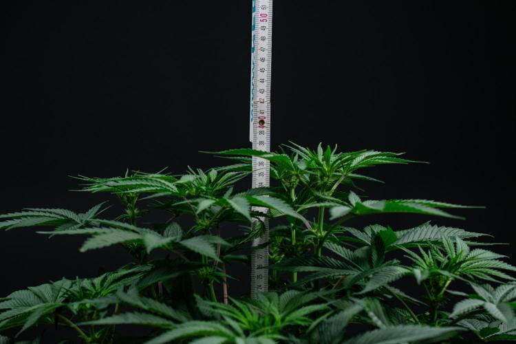 🔸 Stretching has begun but remains well controlled. Internodes are short to medium, the tops are largely maintaining their height – exactly as desired. The first fine pre-flowers are appearing at the nodes, the 12/12 switch is taking effect.