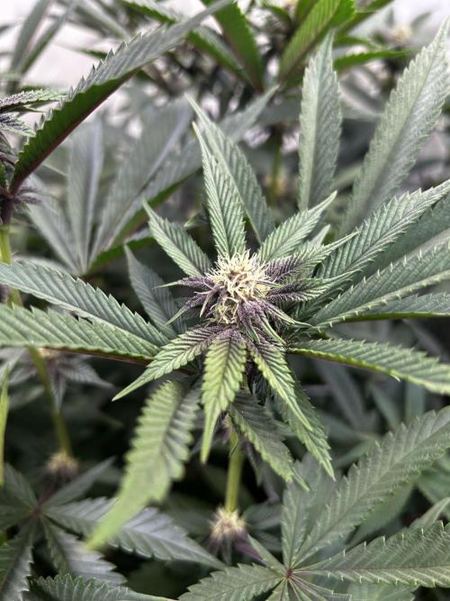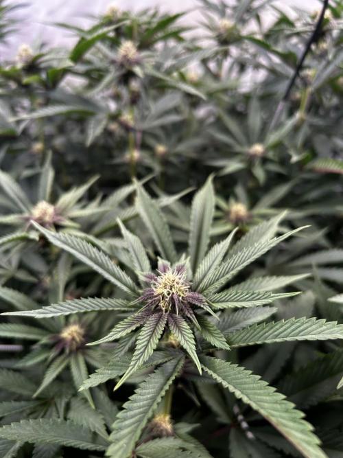 StoneyApple Day 12 – “Welcome to the Jungle” 😄 The plants are stretching beautifully, and many of the shoots have reached the top. Everything looks healthy and strong. The buds are clearly forming and already showing a beautiful touch of purple. This week, I gave them a little compost tea and removed a few leaves here and there. In the next few days, I’ll do some light pruning under the canopy to tame the jungle a bit. 🌿 Lights set to 80% VPD is between 1.2-1.3