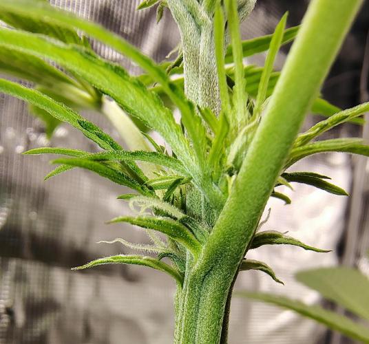 Her leaf smell is taking on a very strong diesel aroma, not at all subtle either 😷. There's literally nothing else in her aroma profile at this point but that nosehair-curling fuel smell. I'm guessing the smell comes from the Gelato 33 side, and although I've not grown Gelato 33, I'm sure its not supposed to be this strong. 😄 Maybe she'll balance out, or maybe these "cheap seeds" have more surprises left waiting.
