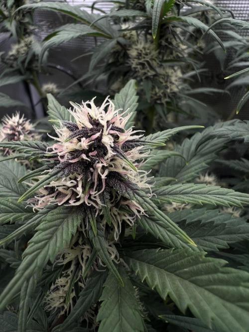 Die rote Pille entwickelt sich prächtig. Die Buds kommen langsam zwischen dem Grün zum Vorschein.