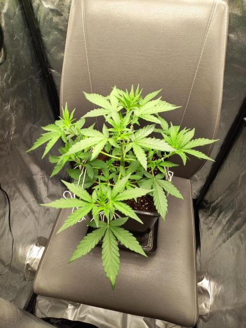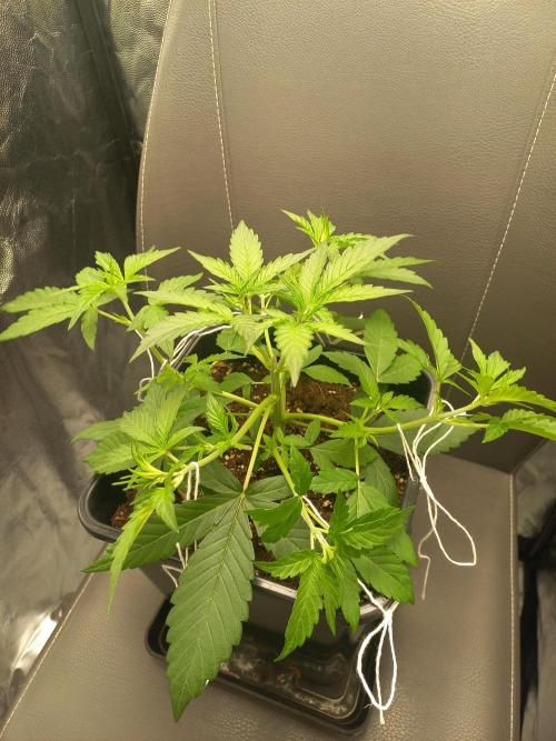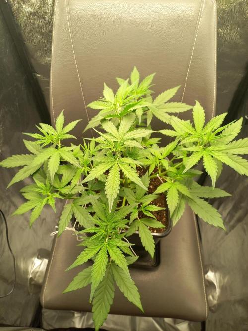 antdreeam Week 2 of vegetation, my plant is growing many leaves while staying low which is good because i have a small tent. Still watering every three days with 0,7 liters of dechlorinated tap water. I topped her on day 14. Looking forward to see her expand in the following weeks :))