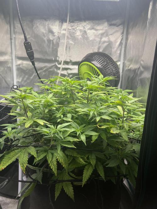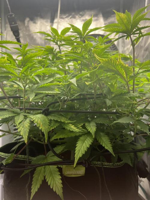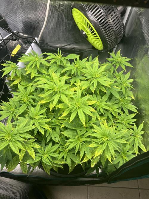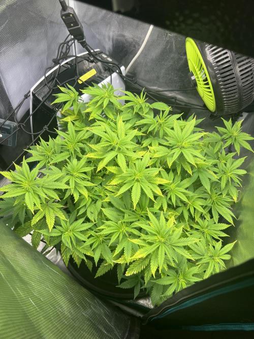 Maggie_de_Block Changed to 12/12 a few days ago so this is last diary entry under veg. Was happy with how she recovered from being underfed and got impatient so she’s had a few days on flower light schedule. Can’t wait for stretch to finish so I can start seeing some buds. The yellowing you see on the leaves is just permanent damage and won’t improve I think, I’ll remove these when I defoliate again in 1-2 weeke