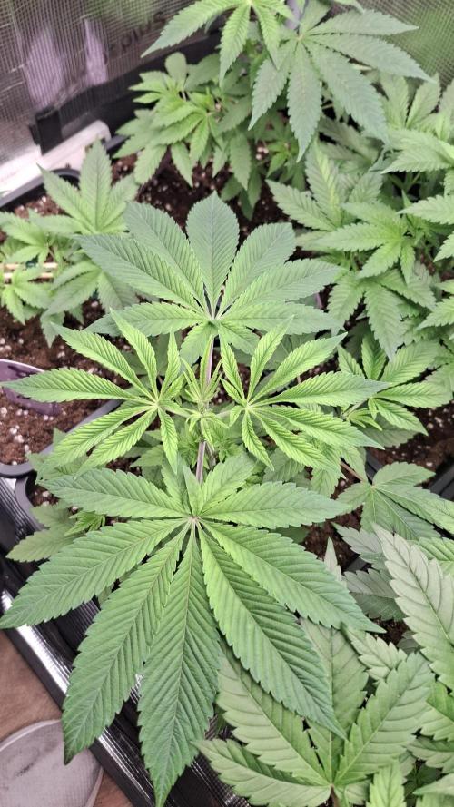 She is also getting her first 3 finger leaves, watering as always by weight so lift the pots.