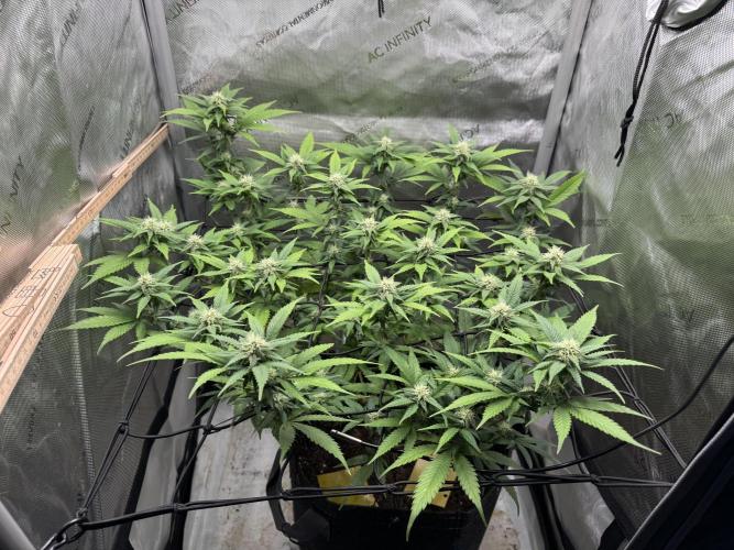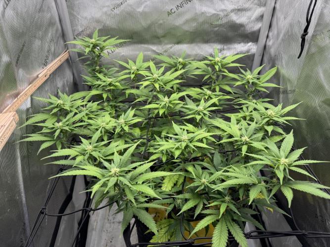 Michi0_36 The plant was firstly toped and then put into a scrog net.Then it moved into another 60x60, without scrog, to continue veg.