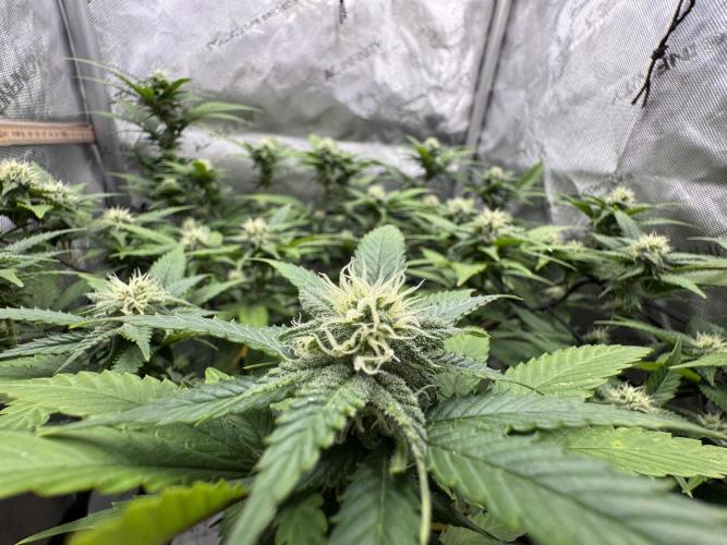 Michi0_36 Diary continues with week 2 of bloom, in a new environment. After talking her into the higher tent the plant looks healthy and the buds are starting to develop. I pretty much just let her grow the next week.