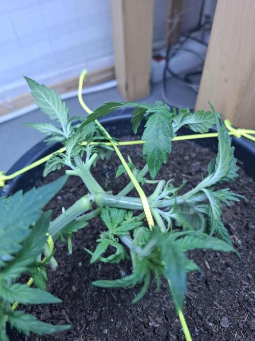 7oktoberl; Snoeien (defoliation) & vastbinden (LST) + thee met een beetje gember en citroen.
