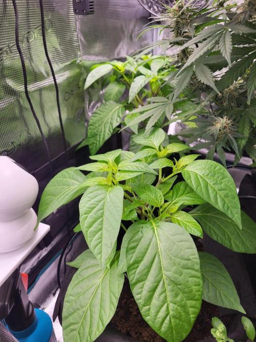 Michel445 Cosmos F1 is growing so quick I have to add an LST net. Hopefully it will limit the height of the plant. I did some defoliation. I changed fertilizer. The two young plants on the left are Cayenne Chili ;) I bought a Mars Hydro drip irrigation to water my plants in the future. I'm planning to go on holidays for 10 days at the end of October. The plant will need so much water.