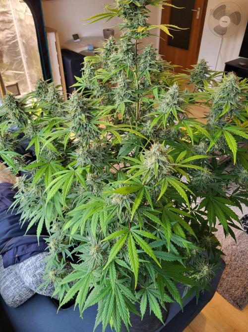 Michel445 I came back from holiday, and I'm satisfied with the evolution of the plant. It stopped growing at 85cm. But buds are growing and their smell is so good :) I wonder when I can harvest Cosmos F1? The tips of the plant are slightly burned, and I'm not sure why. I guess it's because of the water flooding, too much fertilizer and a little too much of LST maybe? Overall the plant looks healthy though.