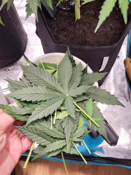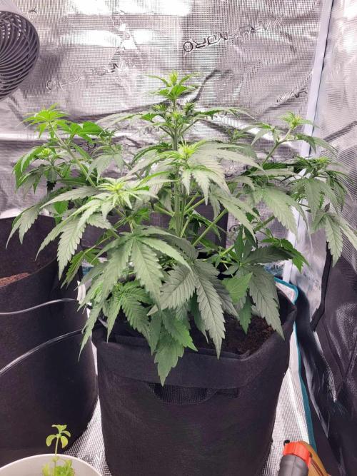 Michel445 250ml of water every 1-2 days. No topping or LST (yet?). I don't want to mess up my first grow. 18/09 the plant gets very bushy. It looks like the lower leaves will touch the border of the pot. What should I do to avoid that? Cut the black tissue? Next problem: On Saturday I will go on holiday for 8 days and the Mars Hydro watering system probably won't arrive on time. May I add about 2 liters of water to the plant so it may survive for the following 8 days? I don't want the plant to go down.