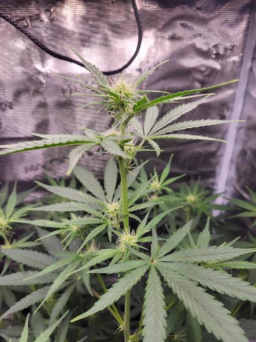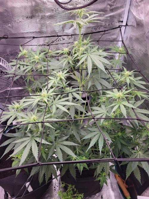 Michel445 Cosmos F1 is growing so quick I have to add an LST net. Hopefully it will limit the height of the plant. I did some defoliation. I changed fertilizer. The two young plants on the left are Cayenne Chili ;) I bought a Mars Hydro drip irrigation to water my plants in the future. I'm planning to go on holidays for 10 days at the end of October. The plant will need so much water.