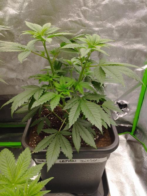 BudBrewerz I've planted the Bruce Lemon Diesel out in a 7l pot filled with Plagron Lightmix, since it's pre-filled with nutrients for a while , I haven't given her any other nutrients yet. For now she is just getting rain water.She seems to have started off very healthy imo.