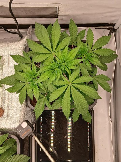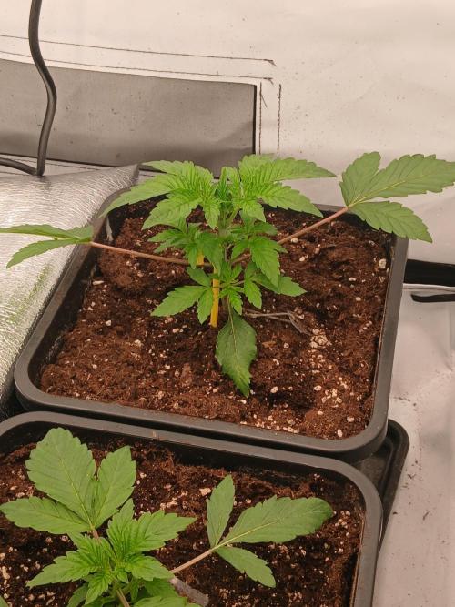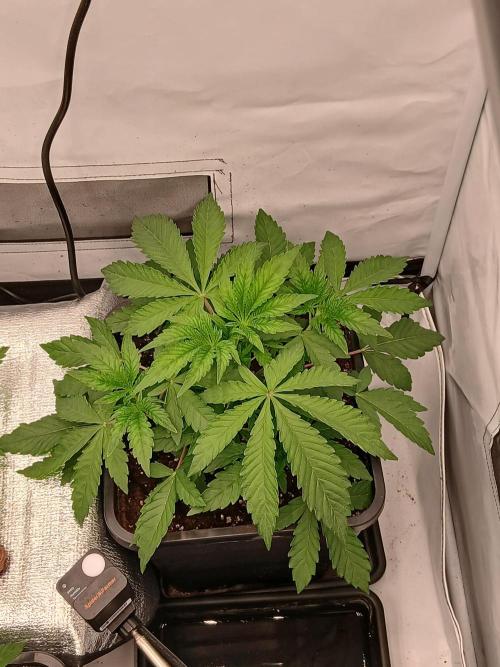 BettyFlores 25.09.2025 Here we grow again and I suspect that the tall Agent Orange will be male. These two received a bit too much light but after recognizing and adjusting now they do look quiet happy. Any bets if female or male are welcome 😃