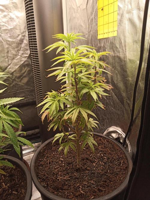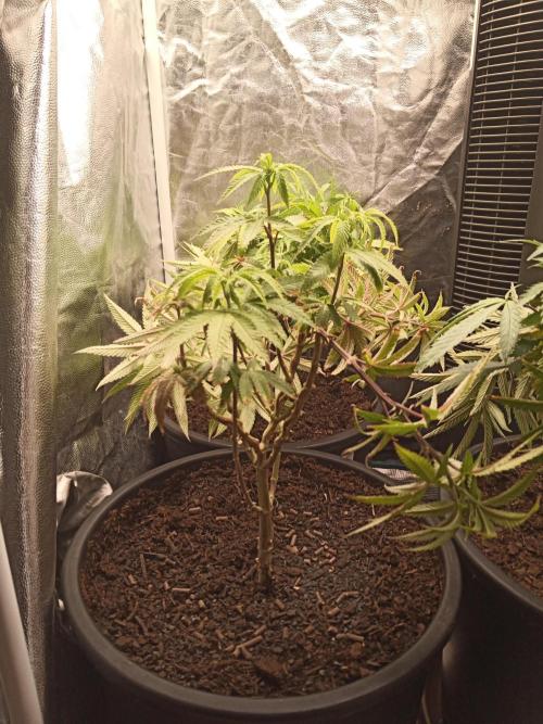 Bounty_Cat Just pass it to 13 hours of light for beginning the bloom. I take my last clone from it because the Kyoto really didn't manage well the overheat of this summer compare to the two others so i remade it after. Day 6: probably the last supercropping i do. I remove a lot of leaf and small (futur) bud for incressing the Big Bud.