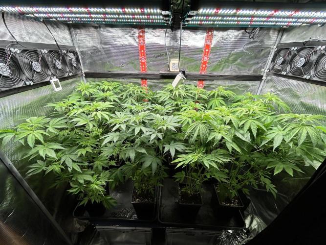 • Training: I topped 14 plants, while leaving 5 plants untopped to compare natural growth vs. trained structure. Already curious how this will play out later in veg and bloom.