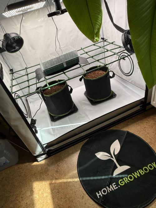 HOME_GROWBOOK Die Pflanzen sind nun gut in der Vegetationsphase angekommen und entwickeln sich sichtbar kräftig. Sowohl 24K Gold als auch Gelato 33 zeigen ein gleichmäßiges Wachstum, stabile Blattstruktur und sattgrüne Farbe.
