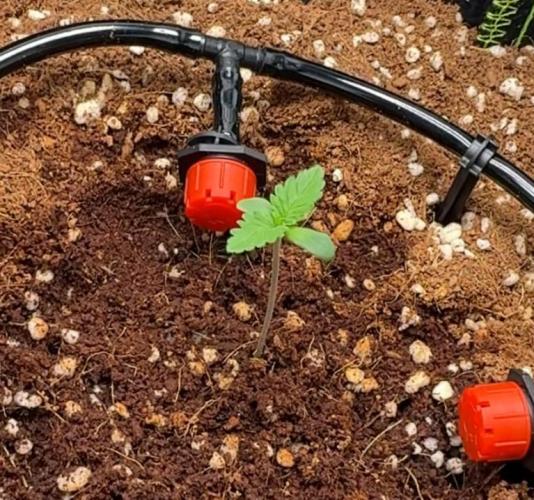 Die Tropfbewässerung läuft konstant und gleichmäßig, Drain-Kontrolle regelmäßig durchgeführt.