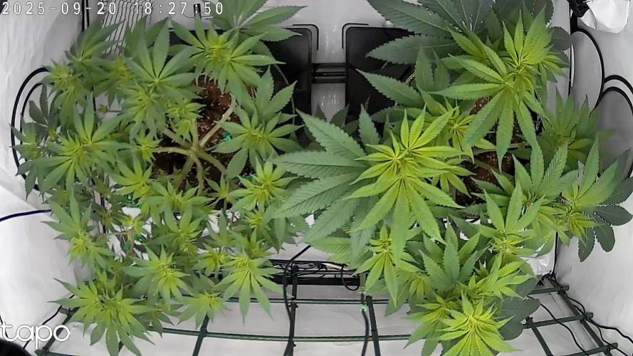 Ihre Tops sind etwas kleiner, wirken aber extrem harzreich. Die Blätter bleiben sattgrün und vital, keine Anzeichen von Nährstoffstress oder Überdüngung.