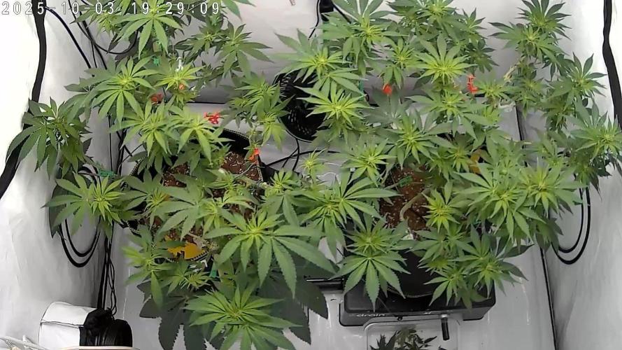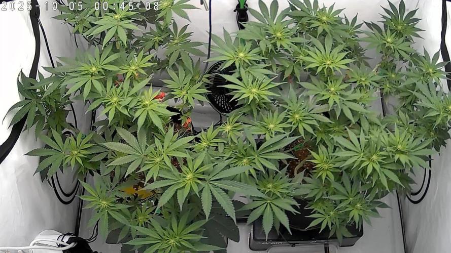 Der Fokus liegt nun voll auf Blütenbildung – die Pflanzen stehen stabil, haben den Stretch abgeschlossen und beginnen mit sichtbarem Blütenaufbau.
