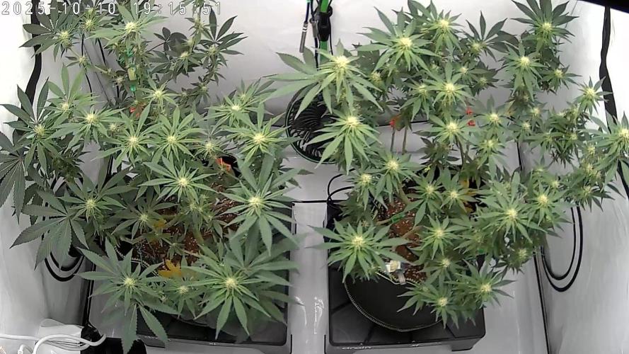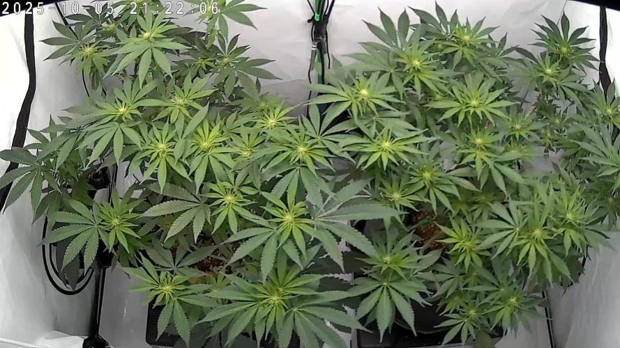 Der Stretch ist komplett abgeschlossen – stattdessen liegt der volle Fokus auf Bud-Aufbau und Trichomentwicklung.