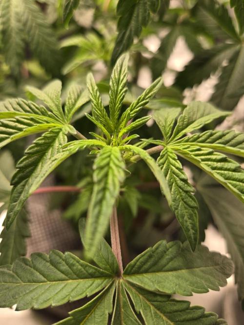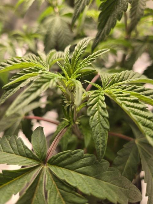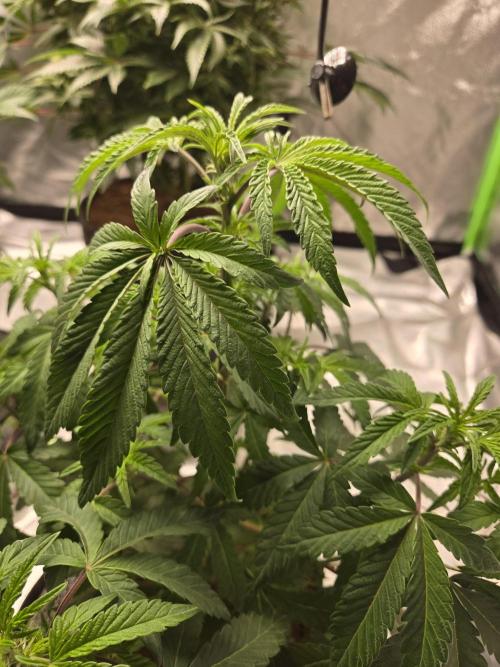 The plants are showing steady growth and good health. The structure is filling out nicely, with strong branches and vibrant green leaves. Stretching has started, indicating the transition into the early flowering stage. The canopy is even and well-balanced, and new shoots are developing quickly. Iโll continue monitoring light height and nutrient levels to support smooth growth as flowering progresses. So far, everything looks on track for a healthy bloom phase ahead.
