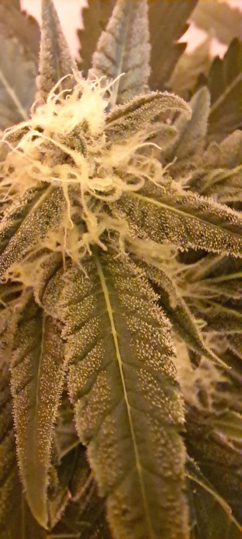 She's into full bud production and the smell is getting better all the time. She seems to have slowed down in the vertical growth and is fattening up 😋.
