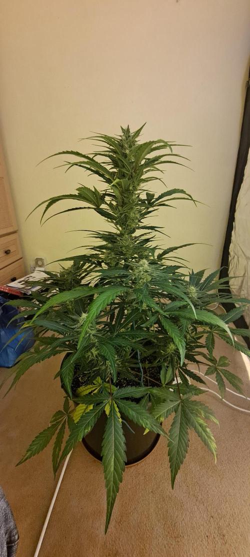 and she has stretched a lot in last week. I've begun LST, tieing her branches down to expose to more light and removing some of the lower growth. She's starting to drink a lot more now and gave her a little feed every other watering. Hopefully it won't stretch much more and go into full flower production 🤞.I swapped bulb to a duel spectrum hps, but I'm waiting for a new duel spectrum bulb to arrive so I no it's on point 👌 ( current one has done a few grows and as I've not grown for a few years due to ill health, don't know it's true output )