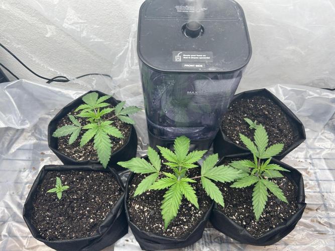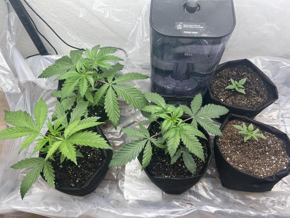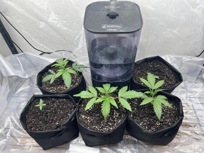 Moved to 1 Gal pots and started feeding. 1 Dreadnought OG 4 Maui Wowie