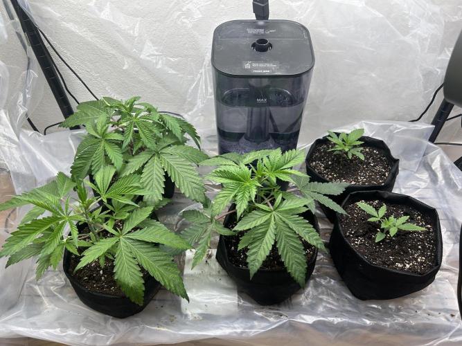 Moved to 1 Gal pots and started feeding. 1 Dreadnought OG 4 Maui Wowie