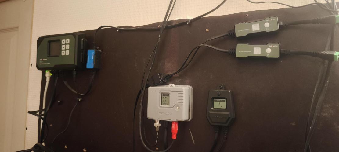 **Contrôle environnemental** : **TrolMaster Hydro-X Pro** avec capteurs (temp, RH, VPD) et modules (ventilation, HVAC, humidificateur/déshumidificateur). Sa stabilité (±0.5°C, ±2% RH) est essentielle pour Permanent Marker, sensible au stress en early veg. Merci TrolMaster pour cette fiabilité !