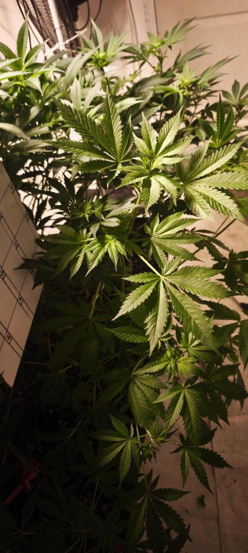 - **Croissance générale** : Les plants ont étiré modérément, avec des entre-nœuds de 2-3 cm. La couleur des feuilles reste saine (vert foncé), sans signes de carences ou de surchauffe. Le LST a bien aplati la canopée, favorisant une exposition uniforme à la lumière.