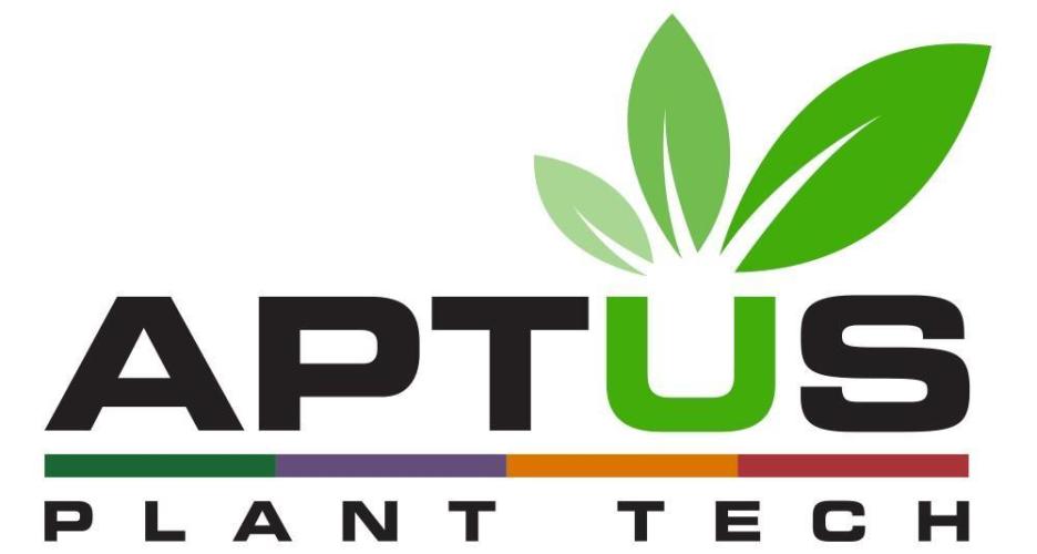 **Nutrition** : Programme **Aptus** (All-in-One Liquid pour base, Startboost pour racines, Regulator pour résilience), dosage initial à 50% (EC cible 1.8-2.0 mS/cm).