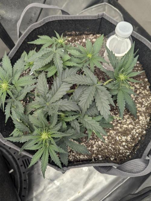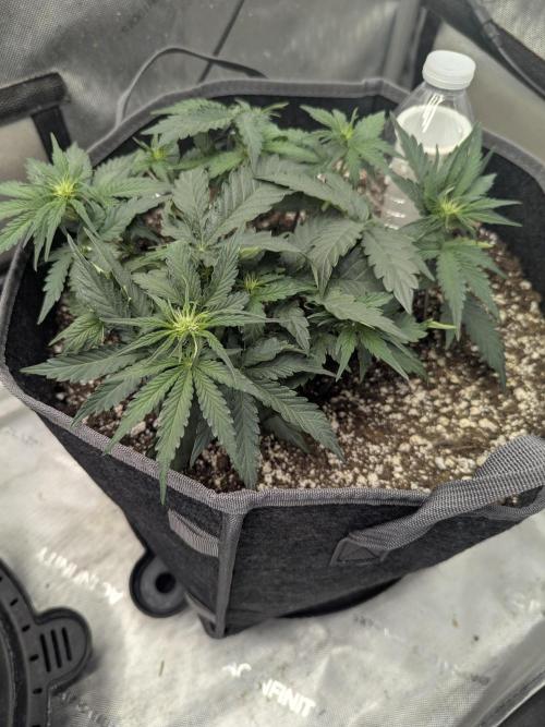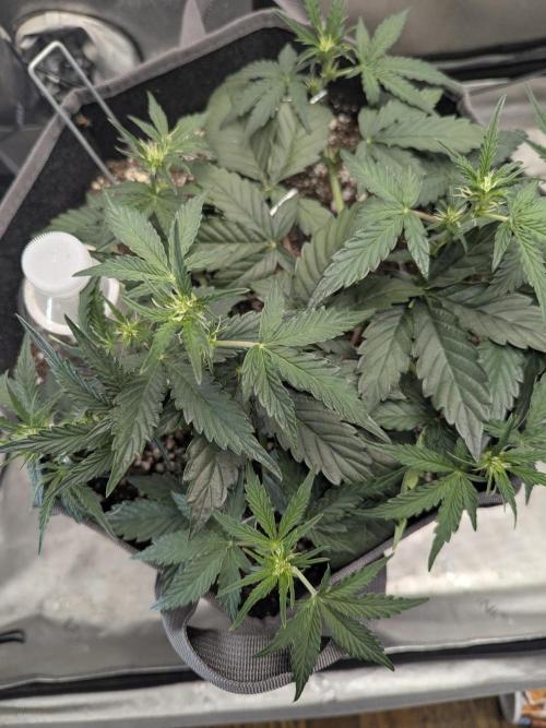 Shemmie after topping been doing some LST to branch her out. Looks like the mixture I gave here was either not mixed fully or some issue since she turned dark green meaning it was hot. only gave her water this week and next till the leaves go back to a ligher color.
