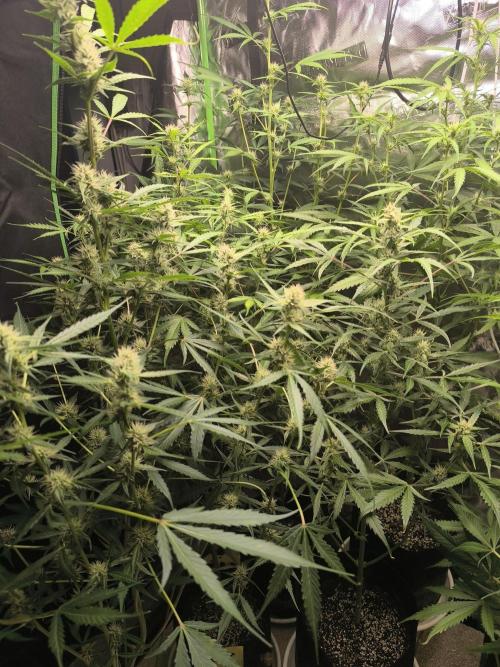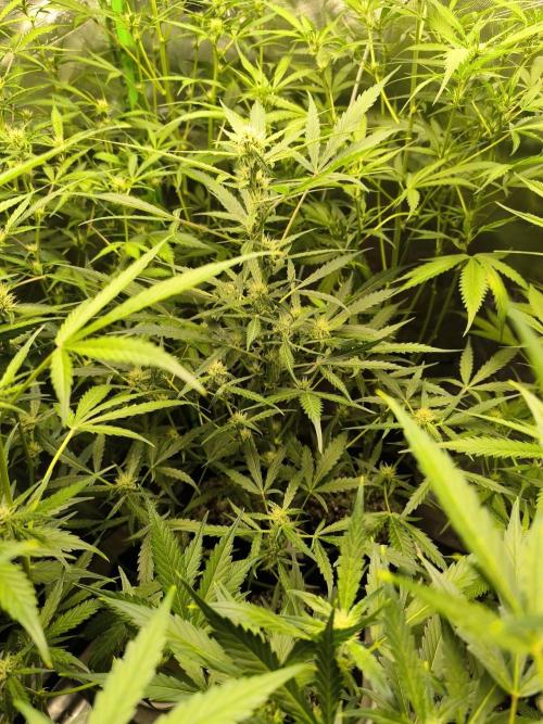 Plants look healthy, buds are swelling steadily, and trichome production is starting to increase.