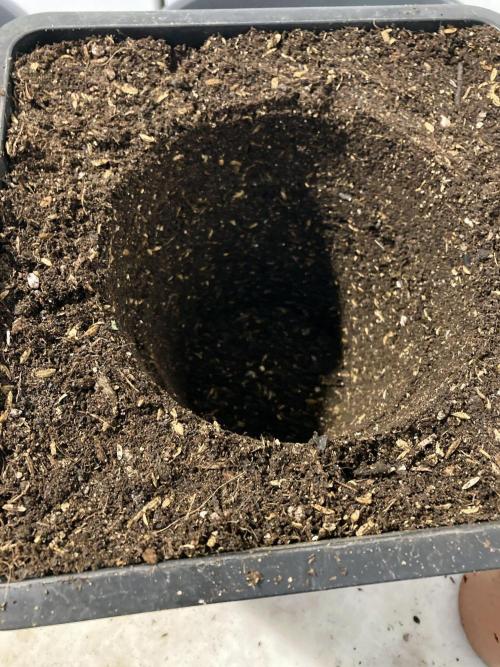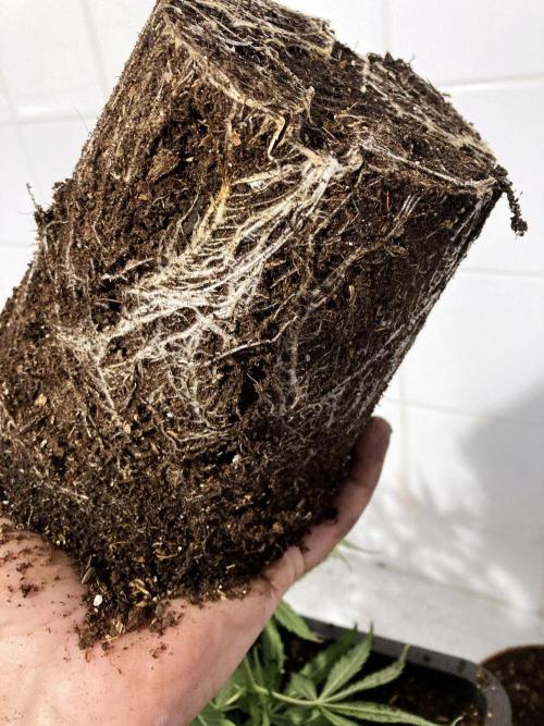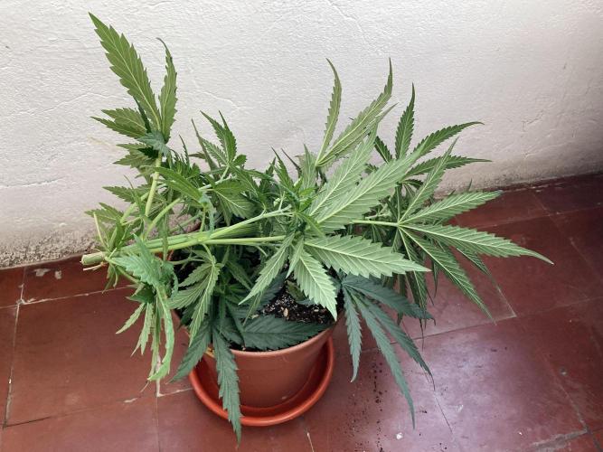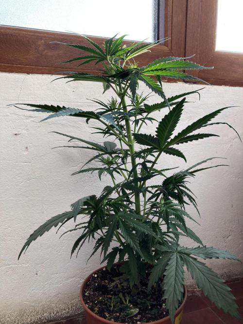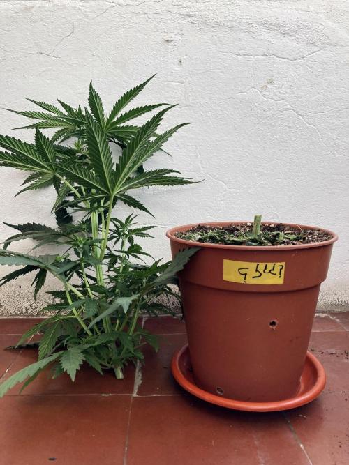 Ayer la trasplanté a una maceta intermedia de 1,5L porque creo que la semilla es regular y quiero a partir de la semana que viene, dando tiempo para que se establezca en la maceta, acelerar el sexado de la planta a ver si es macho o hembra, de ser macho será ejecutado al instante.