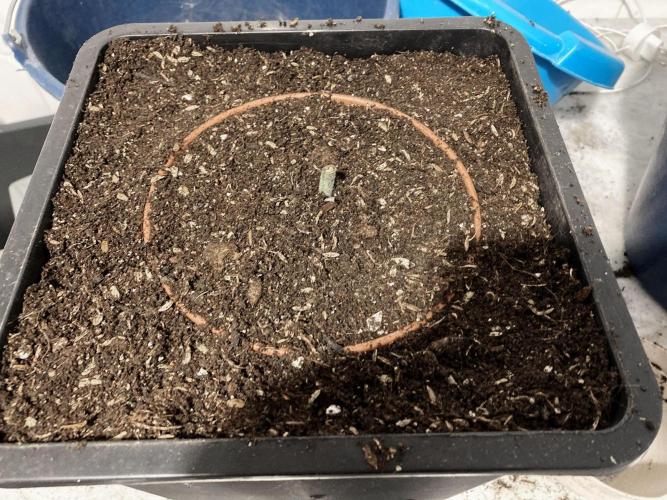 Pero esta planta Congo no va a estar sola en el proceso, ordenando unos cables hace un par de semanas encontré una semilla entre ellos, supongo que es de algún cruce de la temporada pasada ya que saqué muchas semillas variadas debido a un macho infiltrado de una Sativa Brasileña. No me pude resistir a poner esa semilla desconocida y abandonada a germinar, y definitivamente se buscó un hueco en mi jardín germinando en menos de 24H... todo por la causa.
