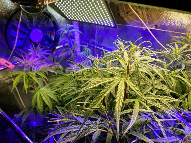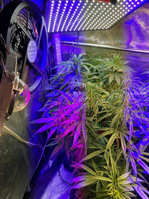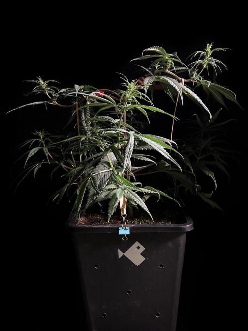El consumo de agua se ha disparado, nada puede frenar a esta planta, la mantengo en el centro de la carpa de cultivo, en el lugar más iluminado en intensidad y variedad de espectros. Todo esto para intentar frenar a esta sativa, porque para mi, no es nada fácil domar sativas landraces en mi pequeña área de cultivo