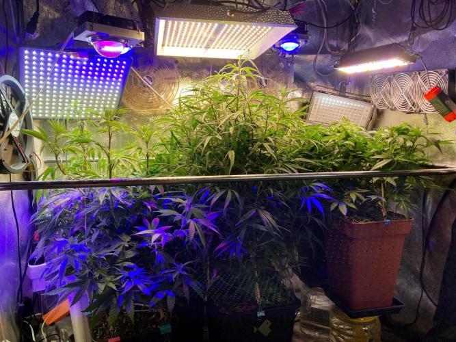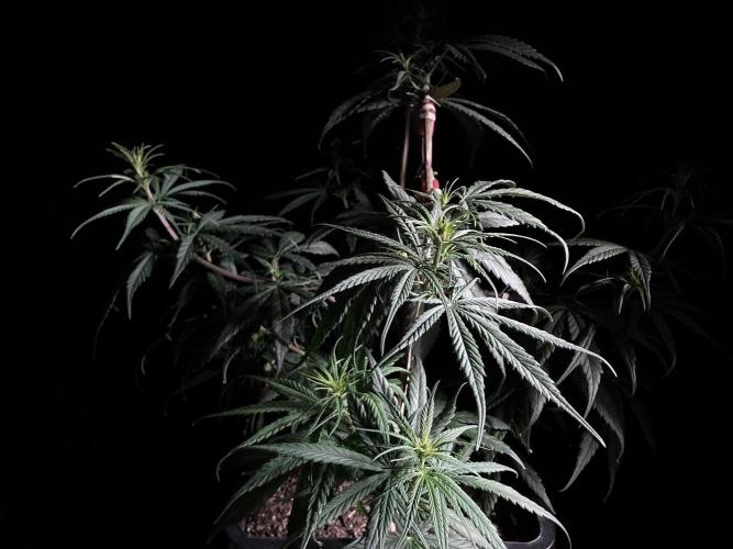 Ha pasado una semana desde que cambié el horario de luces a 10/14 horas, estoy buscando una declaración acelerada del sexo de estas plantas, de momento no hay ninguna señal, pero esta semana espero aclarar el entuerto. Si alguna de las plantas es hembra la pasaré al horario de luces actual del jardín: 20/4 horas, para intentar revegetarla, si hay machos, serán aniquilados 😈
