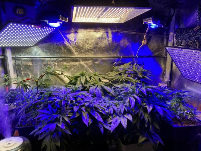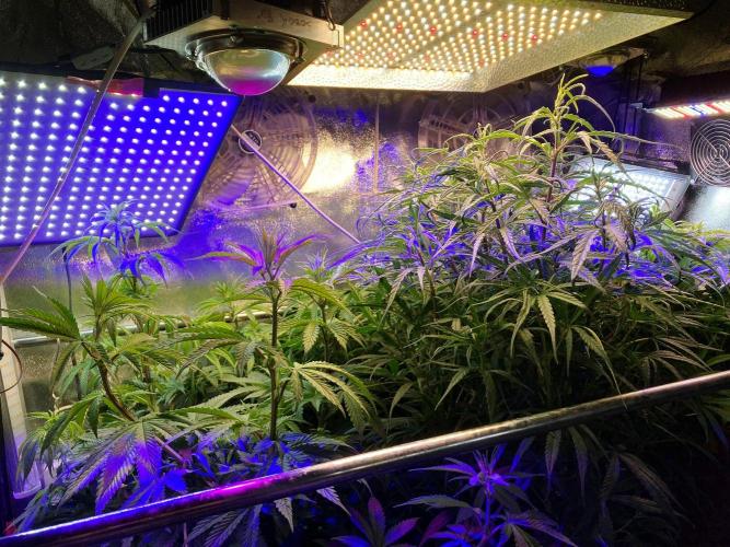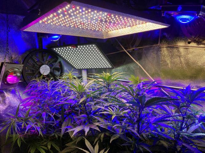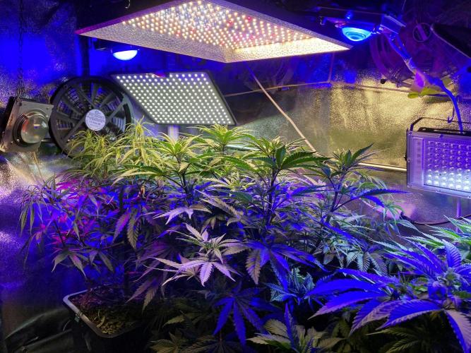 Hoy acabo con el periodo de crecimiento vegetativo de todo el jardín, esta noche cambio el horario de luces, paso de 20/4 horas a 12/12 horas. De momento mantengo el mismo tipo de luces que en crecimiento vegetativo para frenar el último estiramiento vertical que se producirá por el cambio de horario, multitud de lámparas blancas y azules iluminarán todos los rincones, hasta que las plantas completen el estirón final, después cambiaré todo el esquema de espectros de color e intensidad y pasaré directamente a las luces de verano: amarillos, naranjas, rojos, IR... etc. 😍