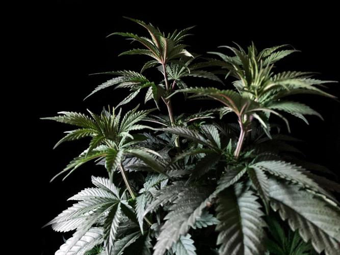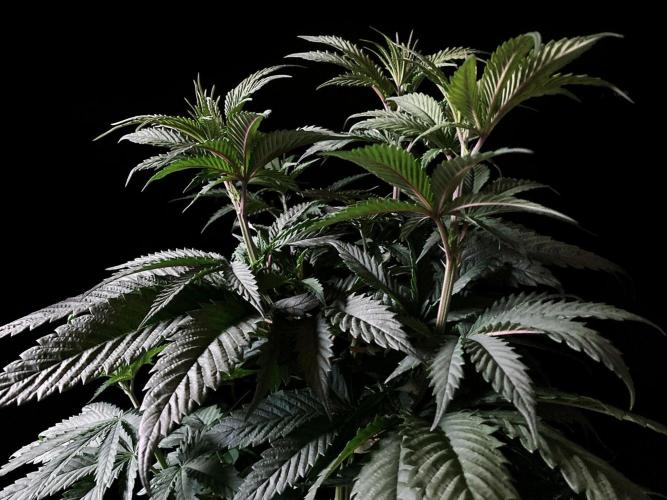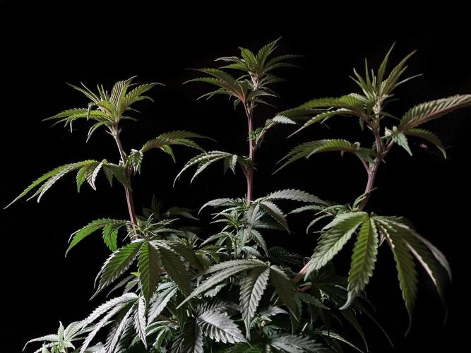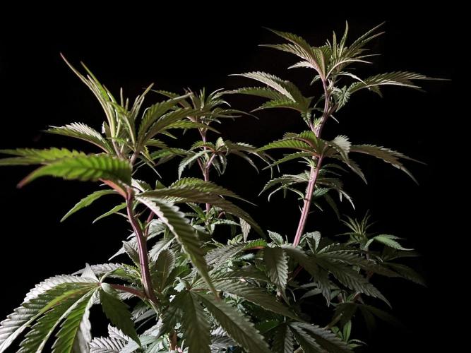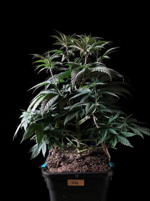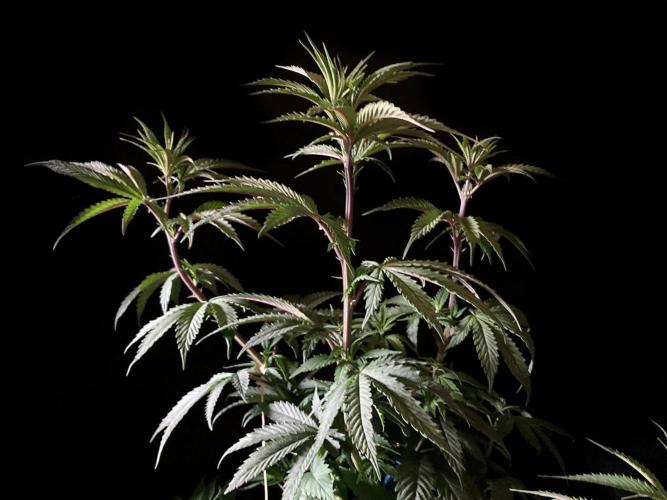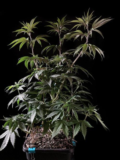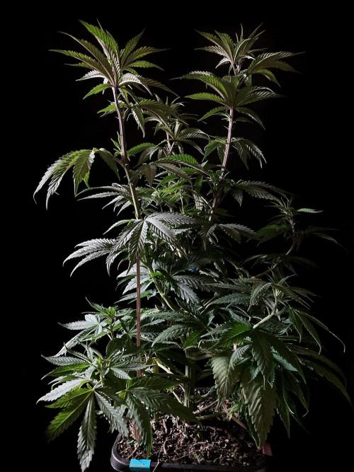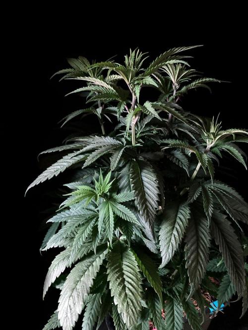 Las ramas laterales muy motivadas por el corte apical, sobresalen impetuosas buscando luz, al tiempo. las hojas reaccionan a la intensa luz azul y crecen gigantescas, favoreciendo a la vez mayor fotosíntesis y consumo de agua... nada puede fallar!