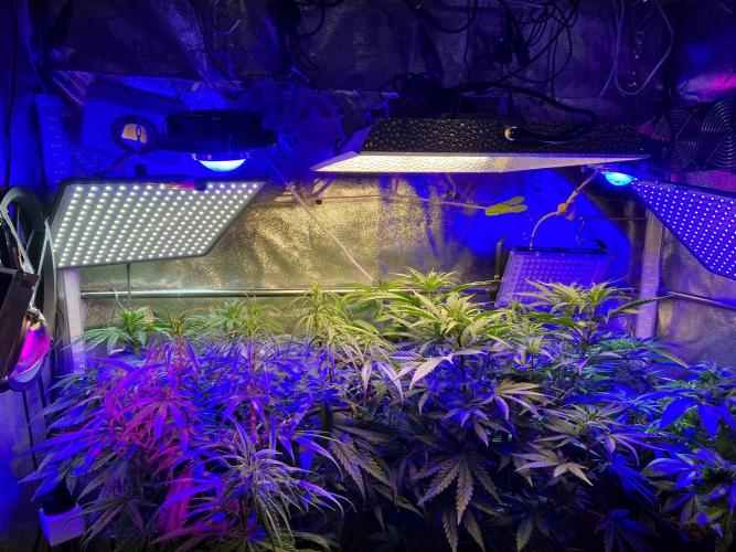 Esta semana debido al aumento del área de cultivo he añadido un panel lateral de 7700K, mi jardín desobediente está en plena primavera, en medio del otoño, con mucha luz blanca y azul.