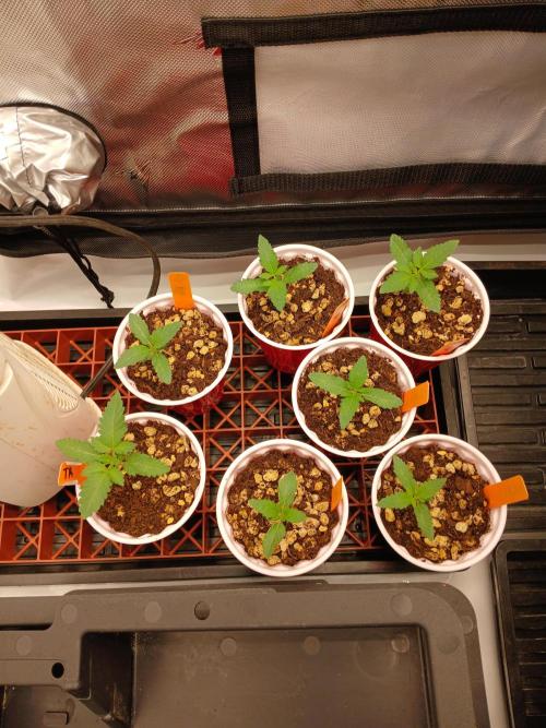 Details: Transplanted Nerds Rope S1 and Tropical Rozay into red Solo cups filled with BuildASoil 3.0. Watered until runoff with Jack’s 3-2-1, pH adjusted to 6.2.