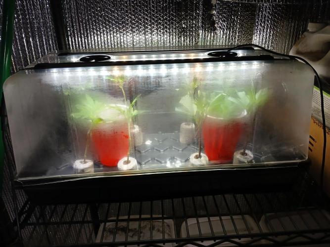 Nutrients: 3.6 g Jack’s Part A, 1.1 g Epsom Salt, 2.4 g Jack’s Part B per gallon; Advanced Nutrients Rhino Skin 7.5 mL per gallon