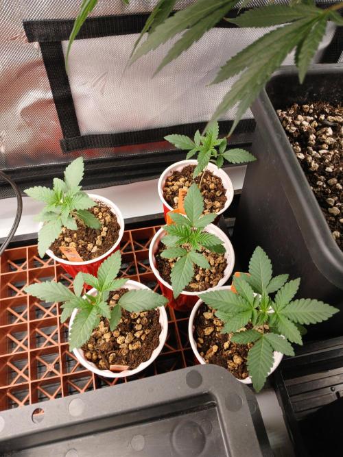Details: Planted 6 Elev8 Nerds Rope S1 seeds and 1 Dirty Bird Genetics Tropical Rozay seed in Char Coir coco coins.