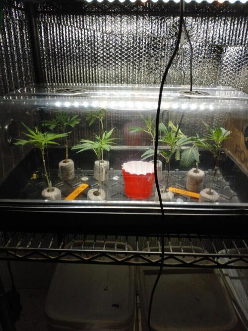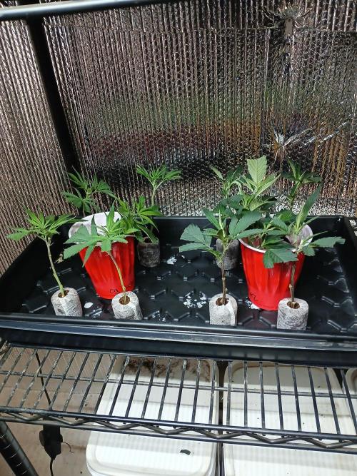 Details: Took clones from the OG Kush and Blue Zkittlez plants. Soaked Char Coir coco coins in an Extreme Gardening Azos solution, then dipped the clones in Clonex and placed them into the coco coins. Watered the OG Kush and Blue Zkittlez plants with 2,000 mL of Jack’s 3-2-1, pH adjusted to 6.2.