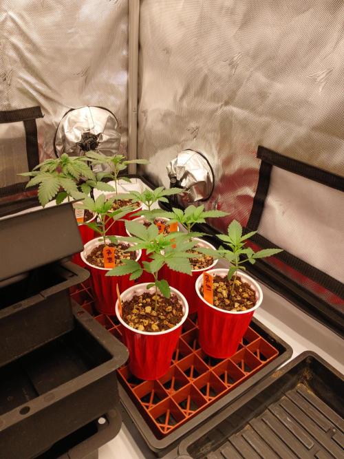 Details: Transplanted Nerds Rope S1 and Tropical Rozay into red Solo cups filled with BuildASoil 3.0. Watered until runoff with Jack’s 3-2-1, pH adjusted to 6.2.